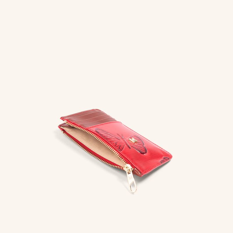 The deep red that bathes the Italian leather of this limited edition from the brand's iconic collection is reminiscent of ripe, juicy berries. The embossed butterflies gain vibrancy through a sun-kissed effect on the leather, achieved through an exclusive dyeing process known as tamponado. This handcrafted technique, performed in Italy, gives the pieces in the line a vibrant, warm, and lively appearance, harmoniously complementing the crimson leather found primarily in handbags and wallets. Each design becomes the centerpiece of the look, imbuing it with an energy that is both intense and elegant; an expression of powerful and confident femininity, designed for women who seek unique pieces that reflect their inner strength and singular beauty.