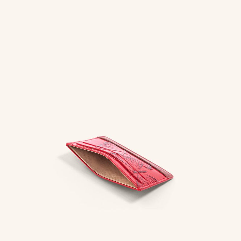 The deep red that bathes the Italian leather of this limited edition from the brand's iconic collection is reminiscent of ripe, juicy berries. The embossed butterflies gain vibrancy through a sun-kissed effect on the leather, achieved through an exclusive dyeing process known as tamponado. This handcrafted technique, performed in Italy, gives the pieces in the line a vibrant, warm, and lively appearance, harmoniously complementing the crimson leather found primarily in handbags and wallets. Each design becomes the centerpiece of the look, imbuing it with an energy that is both intense and elegant; an expression of powerful and confident femininity, designed for women who seek unique pieces that reflect their inner strength and singular beauty.