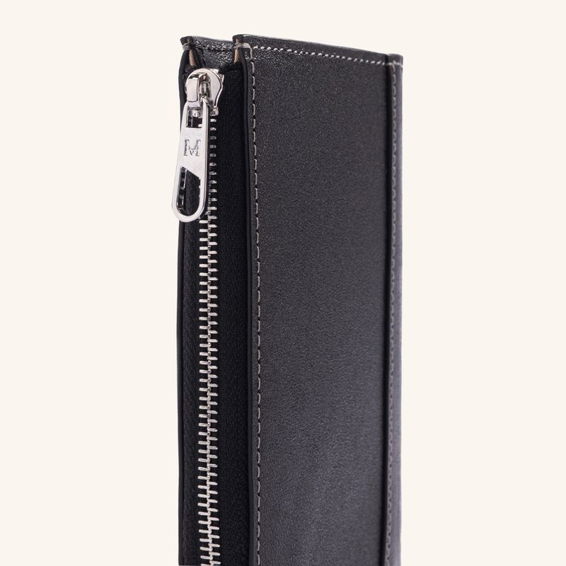 A worn platinum effect, reminiscent of medieval armor, gives this new version of the brand's iconic collection a strong yet delicate appearance, thanks to the delicate butterflies embossed on the Italian leather that appear sculpted in metal. The depth of this hand-dyed work is created by the contrast between black and white, resulting in a timeless and distinctive metallic tone, ideal for women who leave their mark.