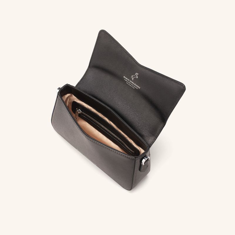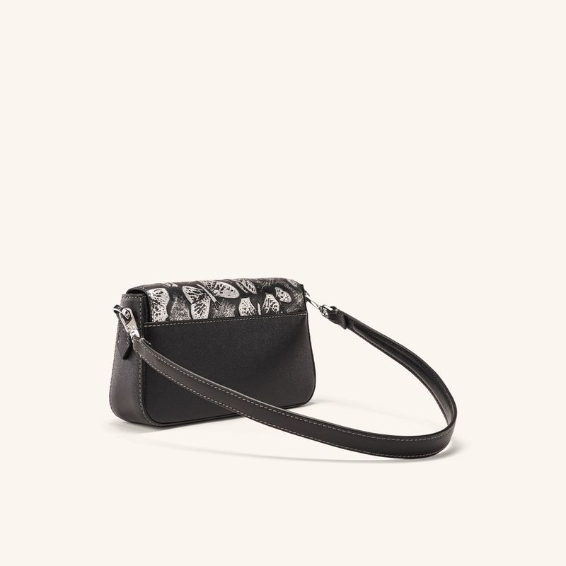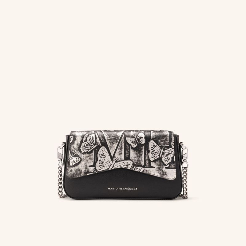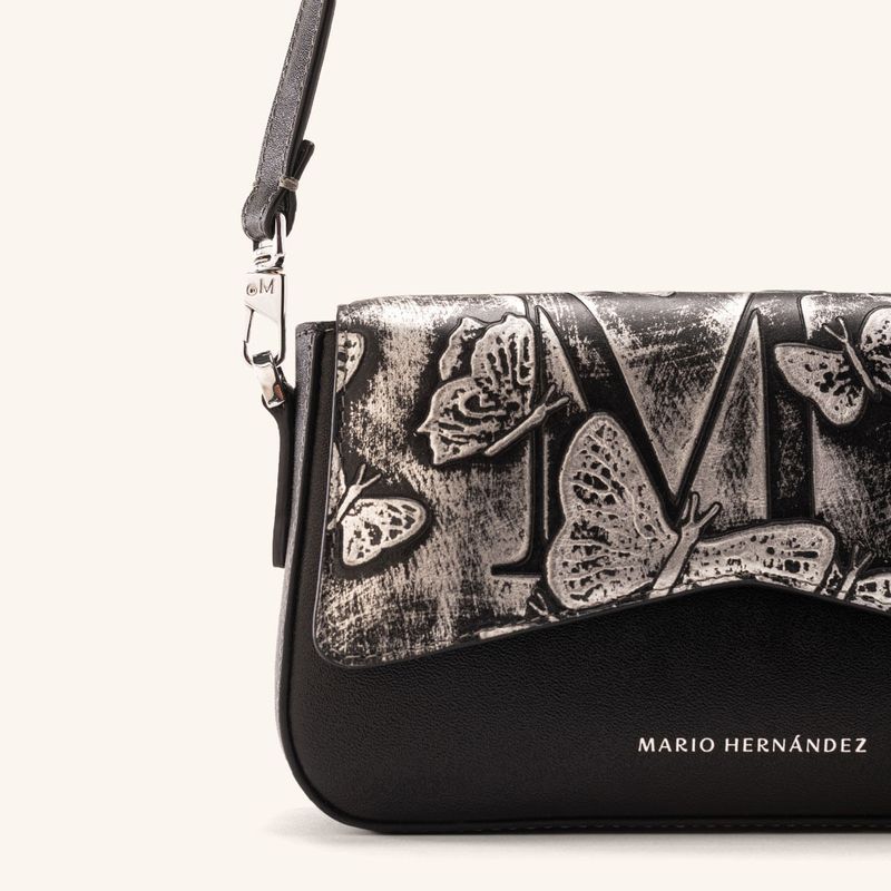 A worn platinum effect, reminiscent of medieval armor, gives this new version of the brand's iconic collection a strong yet delicate appearance, thanks to the delicate butterflies embossed on the Italian leather that appear sculpted in metal. The depth of this hand-dyed work is created by the contrast between black and white, resulting in a timeless and distinctive metallic tone, ideal for women who leave their mark.