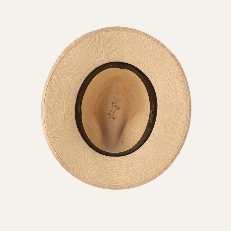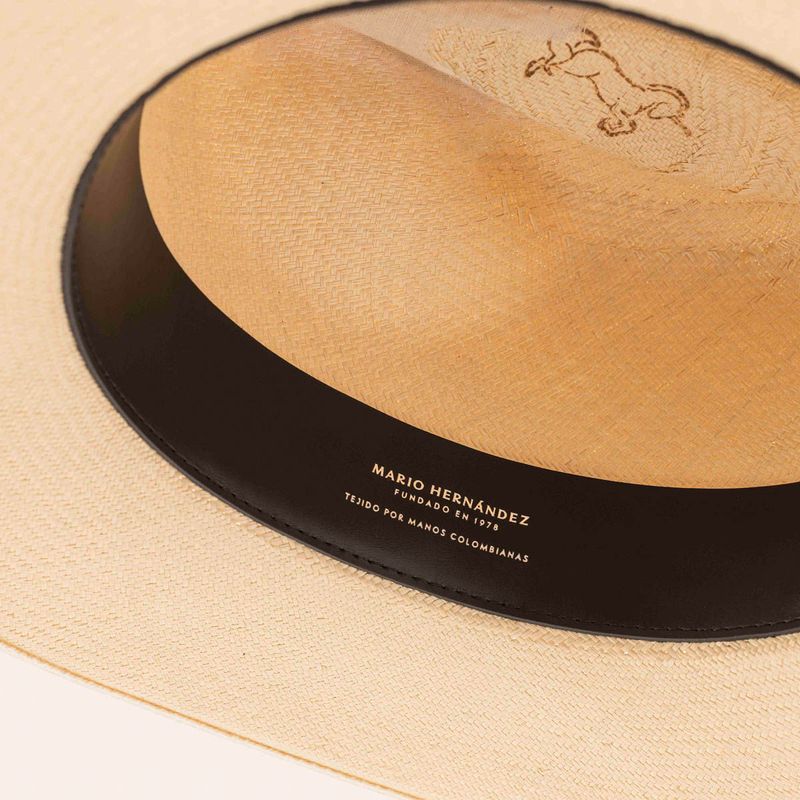 The aguadeño hat is a representative design of the artisan talent in Colombia. Its laborious weaving, made of iraca palm fiber, is made one hundred percent by hand in Aguadas, Caldas, and its assamble is made completed in our factory in Bogota, where expert craftsmen are in charge of putting the morsel and leather ribbon on it. Marking it with a heat seal on the inside of the cup.